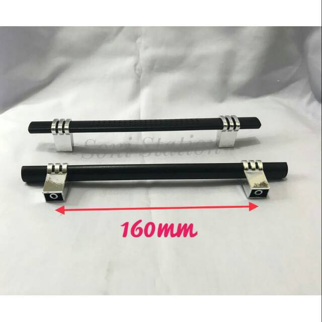 Jarak antara lubang baut = 160mmpanjang total handle = 212mmhandle berbahan plastikwarna hitamharga per pcs sudah termasuk baut