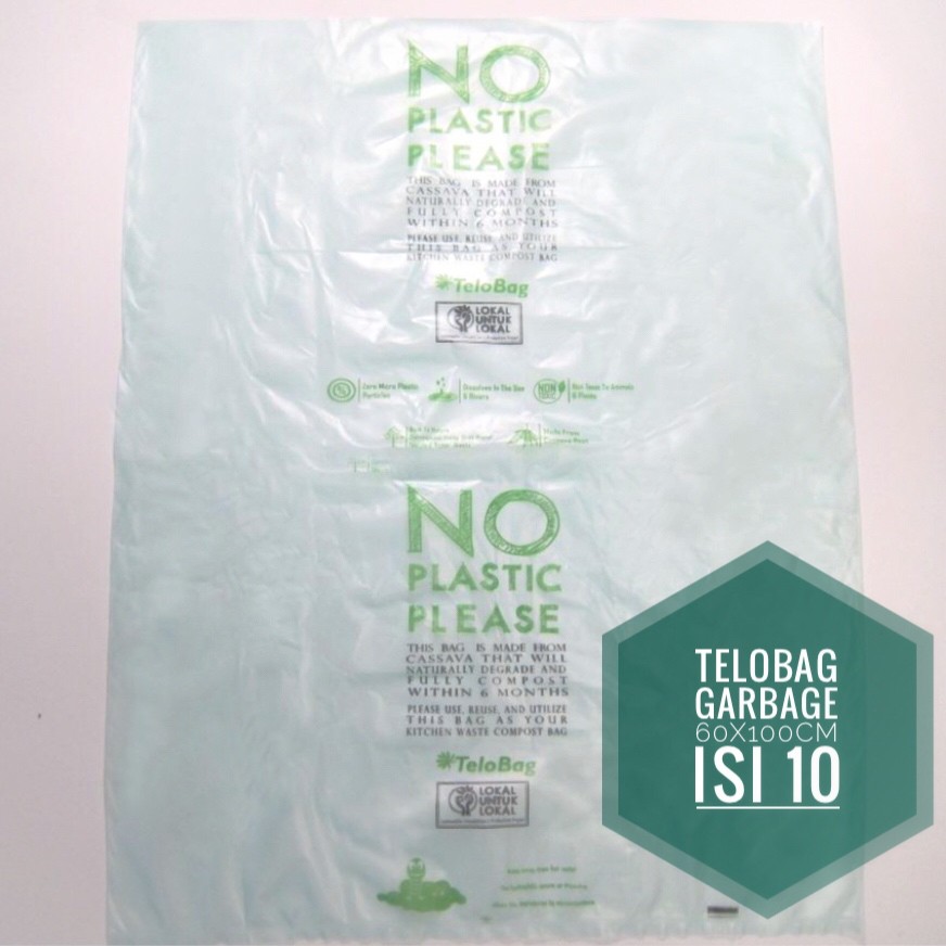 Pembelian 1 item ini adalah 1 pack isi 10 lembar dgn ukuran 60x100 dan ketebalan 40 I 1/4 m TeloBag is an organic plastic bag made from cassava which function as a replacement for conventional plastic bags. While it can appear identical to a conventional plastic bag, TeloBag actually does not contain any plastic ingredients.O TeloBag is the solution for replacing conventional plastic bags, in favour of preserving earth.O Can be reused multiple times.O After it is used, disposing TeloBag to garbage bins willyield compost.O Can be biodegraded with paper.O Can be decompose without leaving any pollution for the earth.The three methods in which TeloBag decomposes without any pollution :1. Consumed by macro and micro organisms. Wherever TeloBag ends up being in, it will never become a polluting residue for the earth.2. Dissolved in a bowl of hot water. In this method, TeloBag will dissolve, making TeloBag a liquid compost due to its cassava constituent.3. Burning it. Burning TeloBag will result i ashes without any other residue.