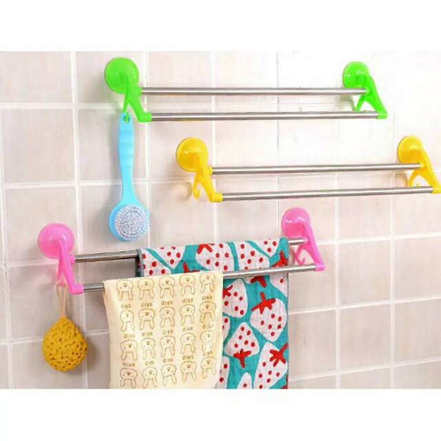 Gantungan handuk model baru, pasangnya tanpa paku, tanpa bor keramik. Kamar mandi jadi modern, serasa di hotel. Gantungan ini dapat dipasang di permukaan kaca atau keramik. Handuk yang selesai dipakai dapat di anginkan di gantungan ini,Gantungan handuk berbentuk panjang, terdapat 2 baris besi gantungan dari bahan stainless, anti karat. Handuk dapat dijemur melebar di gantungan ini, handuk gak bakal numpuk sehingga lebih cepat kering.Tempelan berbentuk karet hisap, daya hisap karetnya kuat, gak mudah lepas, cara pasang :– Lap bersih permukaan yang hendak dipasang, lalu keringkan– Tempel gantungan ke kaca / keramik– Tarik kedua ujung gantungan dari atas ke bawahBarang Tidak bergaransiNO RETURNNO RE