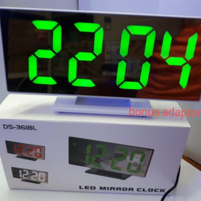 Tersedia Led hijau, merah dan putih.Tulis led yang diinginkan di keteranganJam Digital Meja Led Mirror Clock DS-3618Jam multifungsi untuk mengukur temperatur udara, selain itu ini juga memiliki fungsi jam, kalender dan alarm. Desain Cermin atau Mirror membuat jam alarm ini dapat berguna sebagai dekorasi ruangan. Dilengkapi dengan lampu backlight terang agar angka tampak jelas meskipun diruangan terang.FeaturesIndoor Temperature DisplayDapat mengukur suhu ruangan dengan. Measurement yang digunakan adalah celcius.Alarm ClockJam ini juga di lengkapi dengan alarm sehingga dapat menjadi jam weker untuk membangunkan Anda.Backlight DisplayJam ini dilengkapi dengan lampu backlight terang agar angka tampak jelas meskipun diruangan terang.Package ContentsBarang-barang yang Anda dapat dalam kotak produk:1 x Jam Alarm LED Mirror1 x Power Cable (BONUS ADAPTOR selama persediaan masih ada)1 x User ManualSpesifikasi ProdukDimensi Panjang x Tinggi ( 18,5cm x 9,5cm )Kami menyediakan berbagai macam produk BERKUALITAS dengan GARANSI HARGA TERMURAH dan PELAYANAN TER