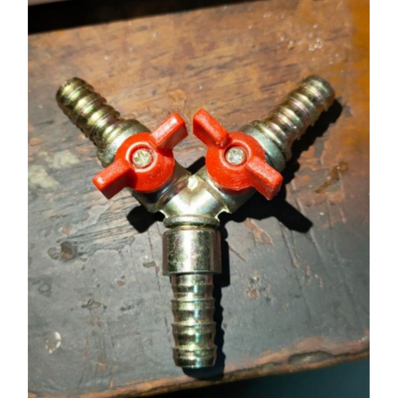 Keran Ball Valve Cabang 3/YFungsi:Untuk memperbanyak cabang jalur gas LPG. Apabila mesin menggunakan 2 burner, maka cabang ini bisa digunakan untuk mencabangkan supply dari 1 tangki gas LPG ke 2 burner. Sudah dilengkapi dengan keran pada setiap jalur keluaran gas sehingga mempermudah untuk mematikan api pada masing-masing burner.Spesifikasi:- Media: sambungan Gas- Size sambungan selang: 9mm- Input 1, output 2 dilengkapi dengan keran pada masing-masing o