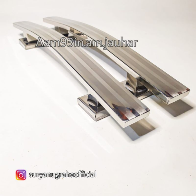 Bayar 65,000 dapat 2 biji Beli 2 pasang (65,000 x 2 = 130,000 rupiah, dapat 4 biji) ongkir 2 kgSemua harga handle pintu kami adalah harga per pasang atau bisa disebut harga per 2 bijiStok promo terbatas Diameter handle 1 x 4 cmPanjang 45 cm full handleJarak antra as baut kira-kira 29 cmTinggi 5,5 cmDiameter kaki kotak 25 x 25 mmDiameter sepatu kotak 5 x 5 cmBerat efektif per pasang 1,15 kgBeli 2 pasang, ongkir tetap 2 kgFinishingnya stainles lis3 minimalis tipe jembatan lengkung rol