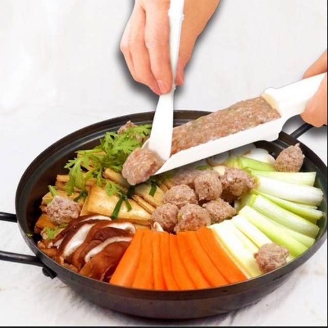 Alat ini untuk membantu Anda membuat bakso / bakwan secara cepat dan tepat. Cacahan bakso tinggal Anda masukkan ke dalam silinder, sementara sekop kecil dipergunakan untuk memotong bahan bakso di dalam silinder sesuai ukuran dan hasil potongan pun langsung meluncur masuk ke dalam panci. Proses memasak lebih cepat, tangan lebih bersih, dan yang terpenting, ukuran masakan lebih konsisten.Sekop ini sesuai untuk membuat bakso / bakwan berbentuk pipih / gepeng, dan bukan yang berbentuk bulat ya..Ukuran : 25 cm x 4 cmBahan : Pl