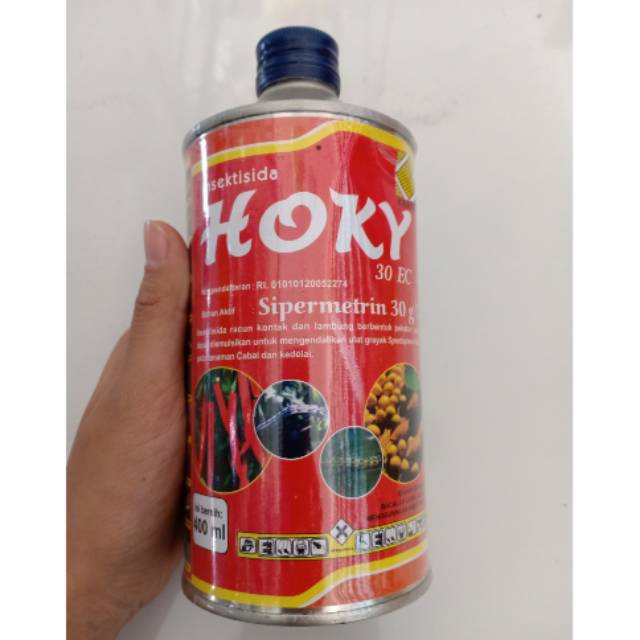 HOKY insektisida 30 ECBahan aktif : Sipermetrin 30 g/lInsektisida racun kontak dan lambung berbentuk pekatan yang dapat diemulsikan untuk mengendalikan ulat grayak Spodoptera litura pada tanaman cabai dan kedelai.Isi bersih : 400mlPT. SARI KRESNA