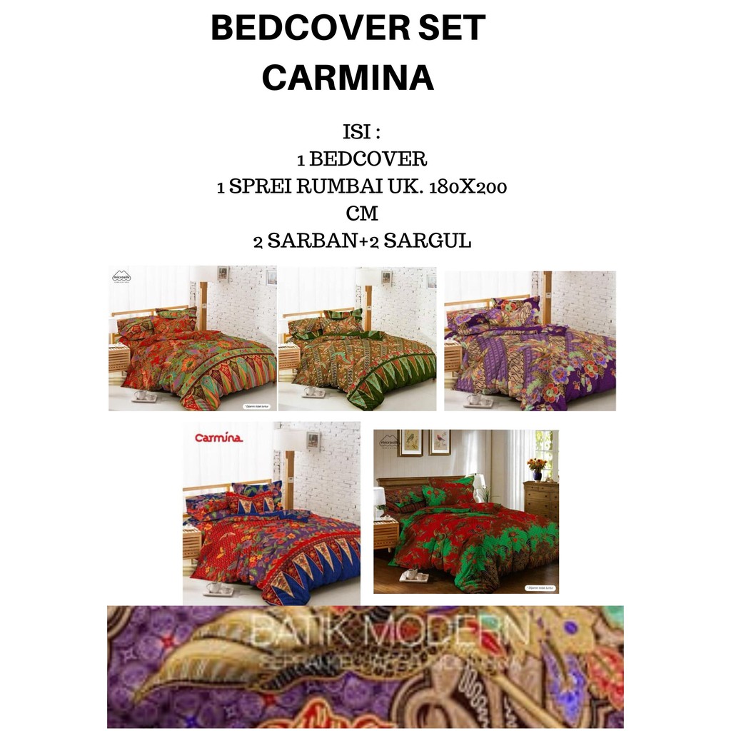 Keunggulan :1. Tidak Luntur meskipun dicuci berulang kali2. Kainnya halus dan lembut, nyaman dipakai3. Menggunakan teknologi print Disperse4. Motif Model terbaruTerdiri dari :Bed CoverSprei Rumbai Uk. 180x200 Sarung Bantal 2 pcs dan Sarung Guling 2 pcsBantal HatiUntuk Sprei Carmina 180x200 cm, silahkan bisa di check di etalase :https://shopee.co.id/RC-Sprei-Carmina-new-product-by-Kendra-uk180-motif-batik-i.5139038.33517389#bedcover#bedcovermurah#bedcoverbagus#spreidewasa#bedcovermotif#bedcovercarmina180#bedcoverking#bedcoverbatik#kamartidur#grosirsprei